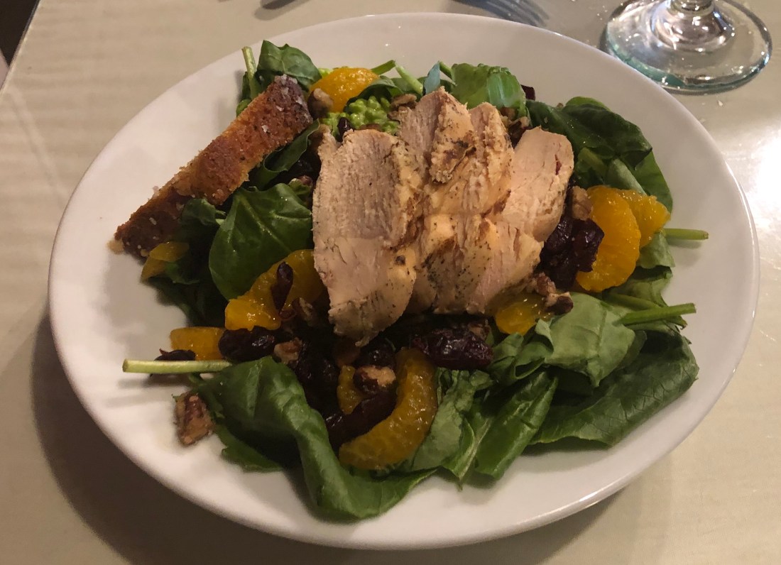 Heidi had a tropical salad with grilled chicken that was fresh and delicious.