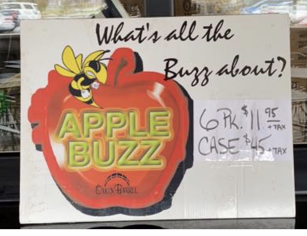 Apple Buzz ๐ ๐ is a seasonal beverage served each fall at the Oaken Barrel Restaurant and Brewery in Greenwood. Their motto is: