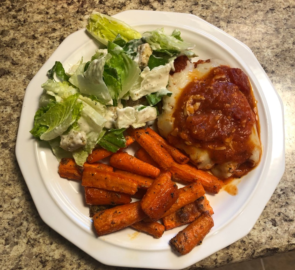 The 🥕 Carrots, Though! Waltsdiner Uncategorized November 25, 2020 1 Minute My daughters have been doing outstanding in the kitchen. I suggested Freddy’s and Rae said “I can cook.” Chicken Parmesan, Roasted 🥕 carrots and I contributed the Caesar 🥗 salad in a bag. The 🥕 carrots were seasoned with olive oil, 🧂 salt and pepper, Dominant ☝️ One and garlic powder and baked to perfection. Kudos, Rae!!! These carrots need to become a regular item on my menu! Share this: Click to share on X (Opens in new window) X Click to share on Facebook (Opens in new window) Facebook Like Loading... Related Published by Waltsdiner Armed with an iPhone 8 and average food budget, it is my mission to seek out and consume unique and delicious dining experiences and then share them with my friends and family. View all posts by Waltsdiner Published November 25, 2020