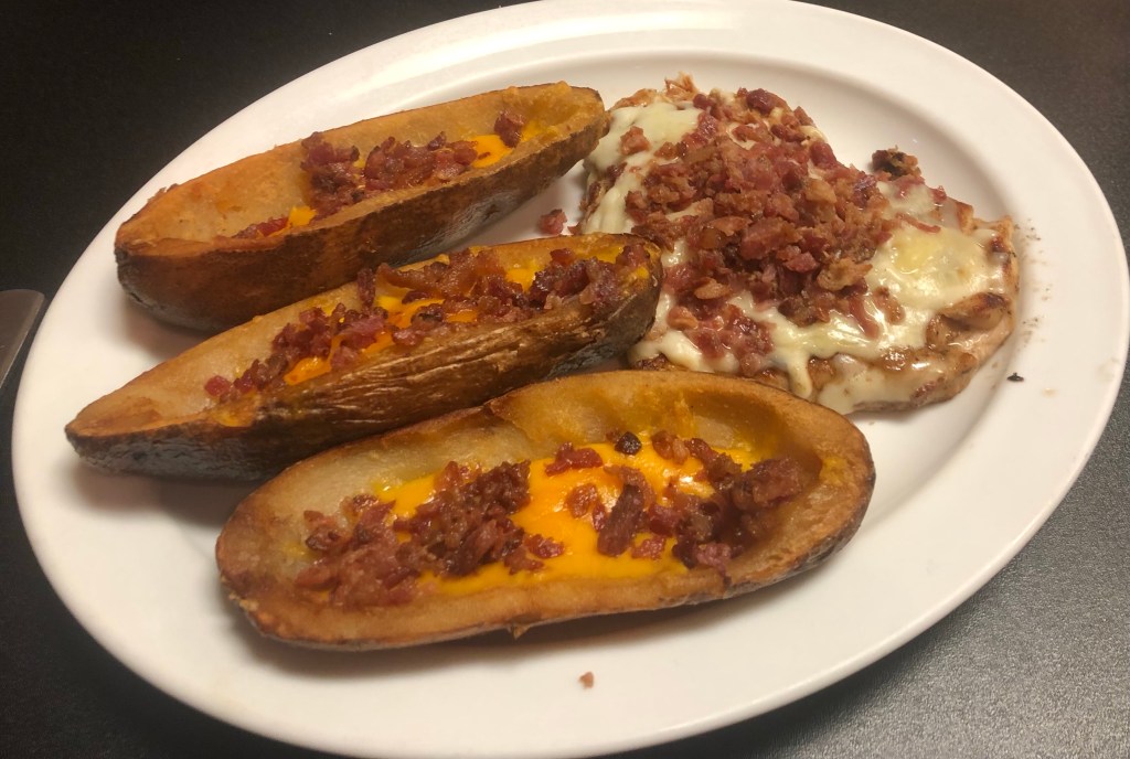 Heidi enjoyed the smothered chicken (cheese and bacon) and the potato skins. Both were very good.As an appetizer we’re tried the fried green beans with Ranch as a dipping sauce. Tasty! 😋