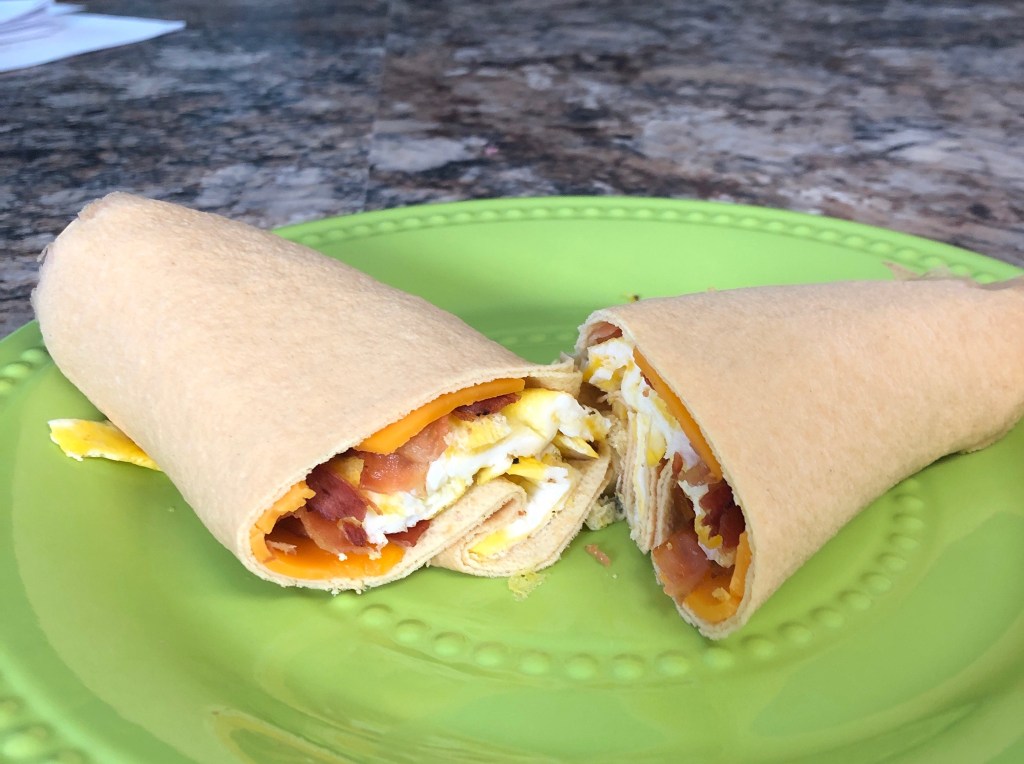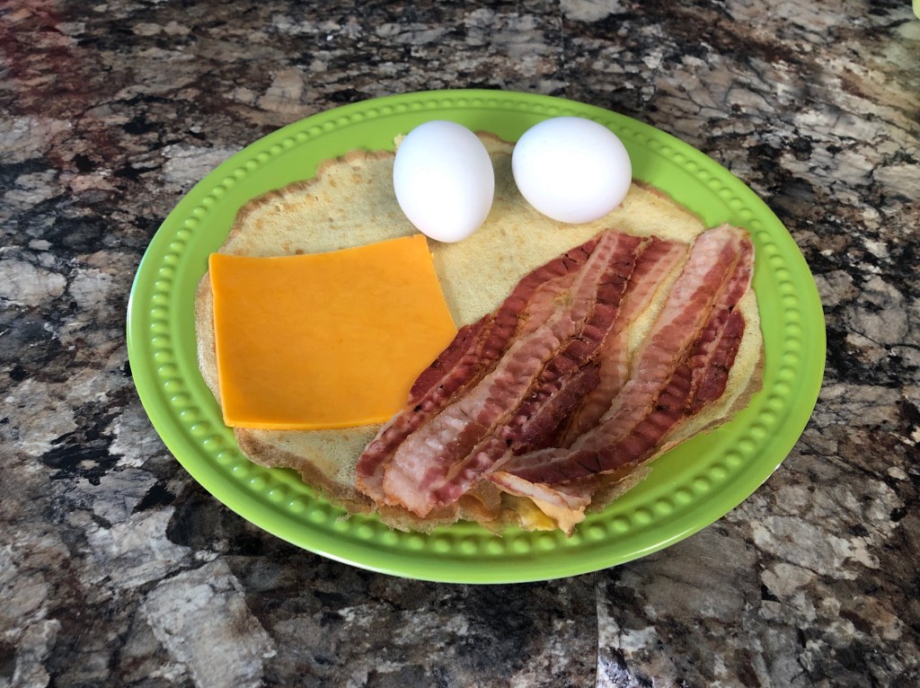 You may need to shop around a bit for the gluten free egg wrap(Sam’s Club and JayC Plus), the deli cheese is not processed!!!, Hormel microwave bacon 🥓 is very easy and you do actually have to cook the eggs. (Dominant One blended in with the eggs.