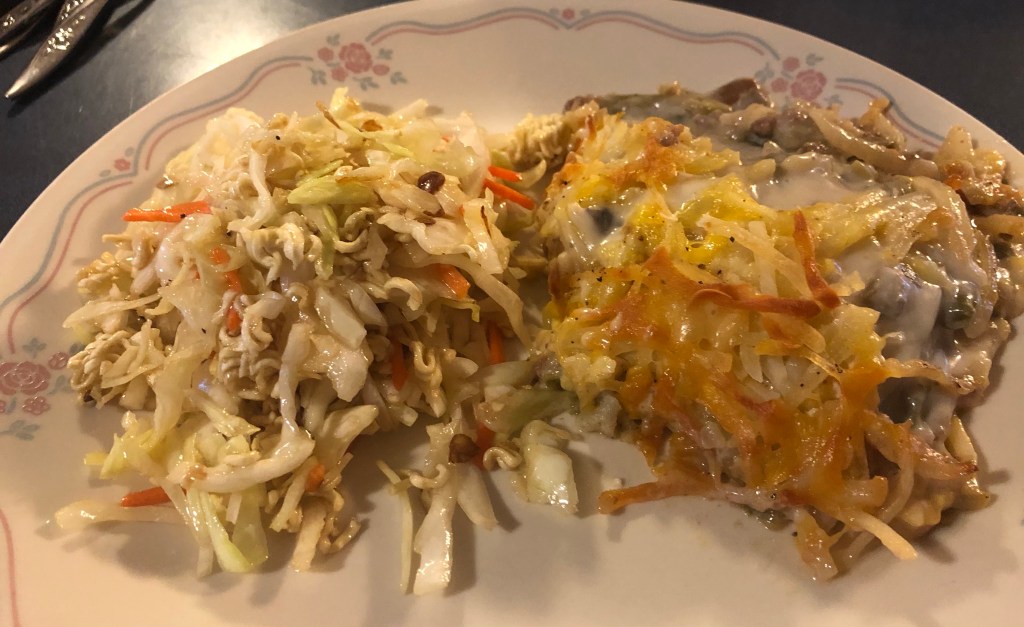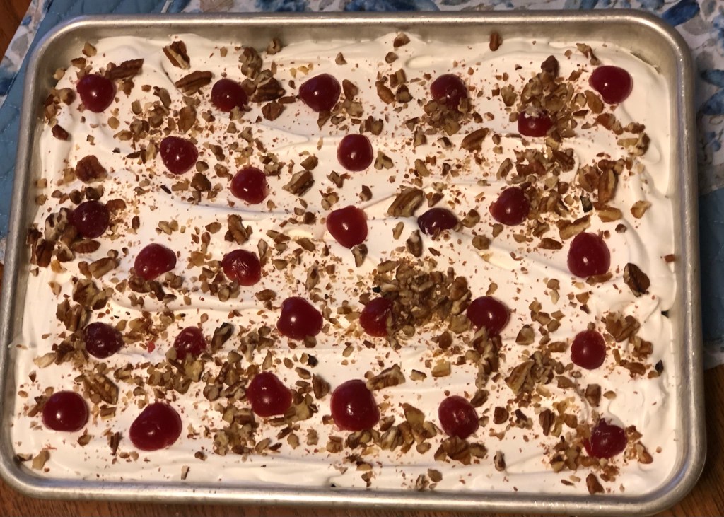 Nina Hackman come up big on Sunday dinner with Green Bean Casserole, Asian slaw, and Holy Cow, Banana Split Dessert.