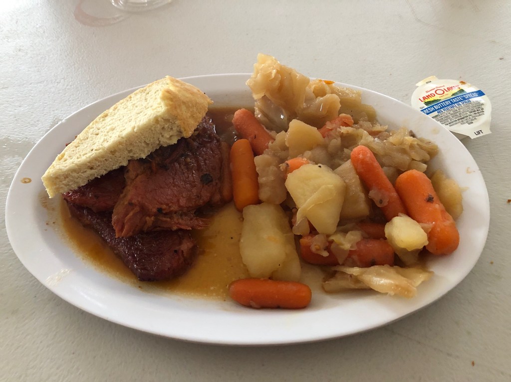 Happy St. Patrick’s Day from Poplar Street!!! There was green beer and a traditional ☘️ Irish dish of Corned Beef and 🥬 Cabbage and potatoes 🥔 and 🥕 carrots. There was a big crowd so we sat outside under the tent with a fire 🔥 pit next to us.