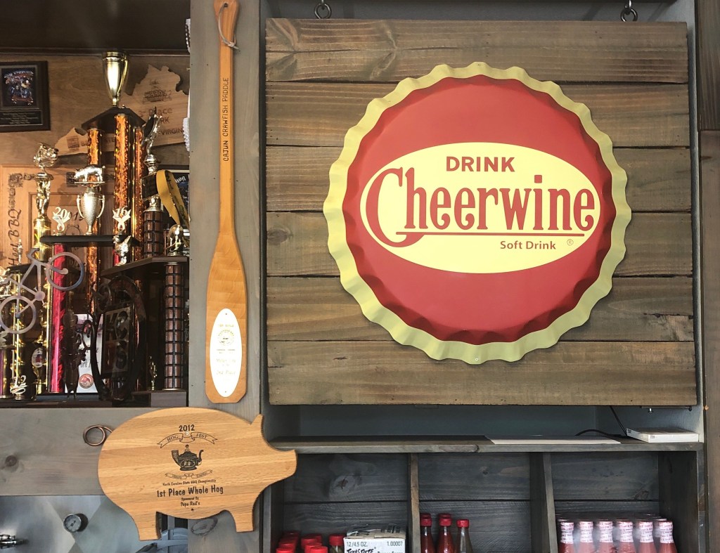 I had the brisket, ribs, Jalopeno Mac and cheese and corn bread washed down with the local favorite, Cheerwine soda. Kudos to the jalapeño Mac and cheese as it made my forehead sweat. We are at a picnic table outside the restaurant. This is a happening spot.