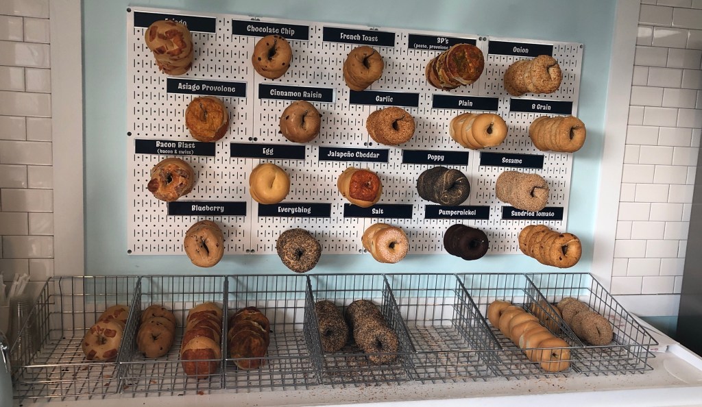 Conveniently located next door to the Fractured Prune doughnut store and less than a mile from our rental house, we tried the Sunrise Bagel Company this morning.