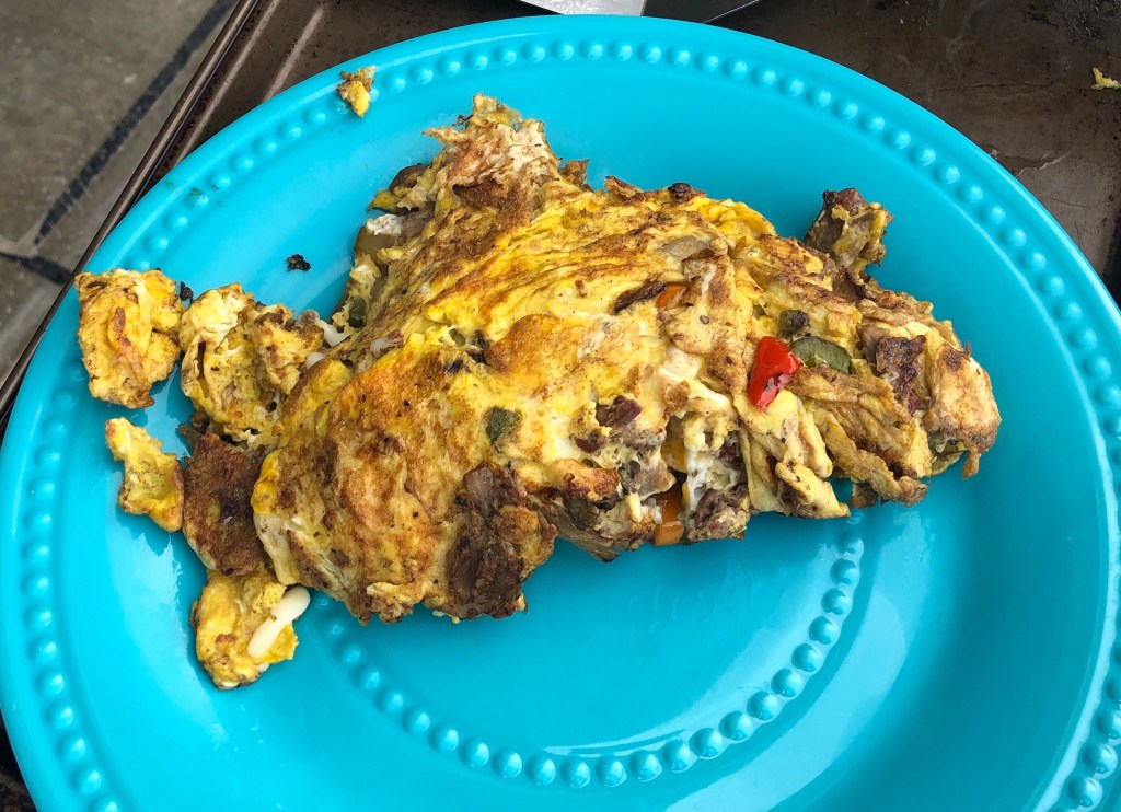 While cleaning the garage yesterday, we uncovered the Blackstone Griddle that we had been ignoring for the past year. I spent a little time cleaning it up and as we had 🤠 Cowboy🥩 steak leftover from last night, we thought we should have steak omelettes for breakfast today after ⛪️ church.