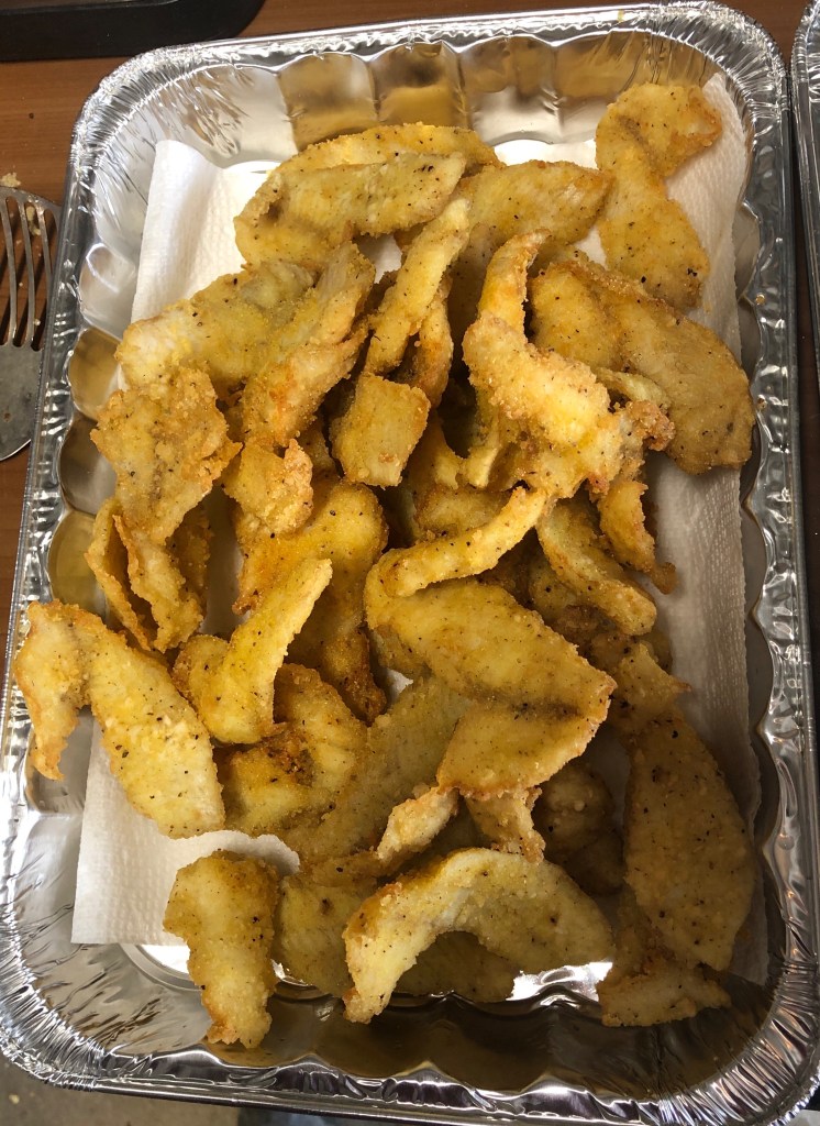 This was a wonderful evening of family, friends and fried food.(Alliteration) Thanks to Pastor Jeremy Yeadon, who supplied the blue gill 🐟, and our gracious hosts, Richard and Nina Hackman, The Late Stahls (Bruce and Mendy), the Early Stahls (Jeff and Connie), Barry and Linda Melloncamp and Ed and Carson Farmer and all of our kids attended and helped fry it up. We had 🏈 football on the outside tv and brewskies from the beer fridge while the camaraderie was outstanding!