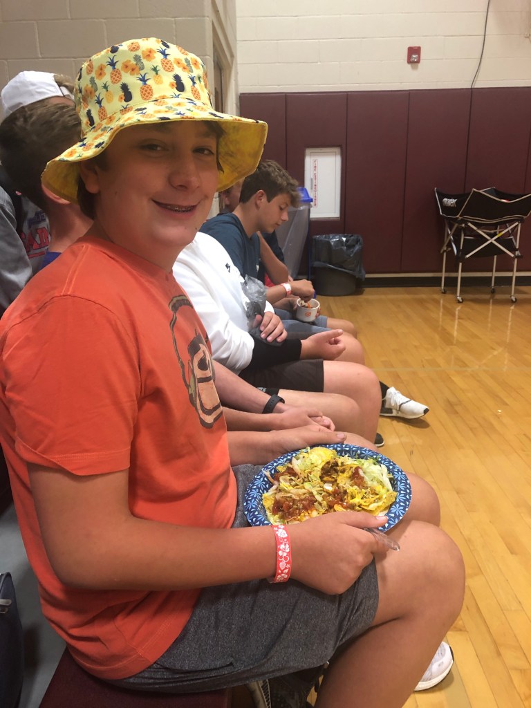 I had a free pass tonight. Heidi is at a barn market somewhere and I had all kinds of options. Never ever did I think I would eat dinner at Immanuel during the volleyball Lutheran Invitational Tournament. However, having not had dinner and when Wyatt Lutes sat next to me with Nachos Supreme, they smelled wonderful and I could not resist.