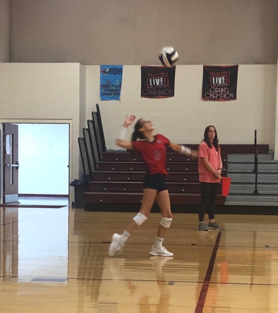 The Saints won three matches in the round robin and will play in the seeded tournament Saturday. The highlight of my night was in match one. It was a close game early when Olivia “The Big O” Fritz, the setter, played a “drop” shot that landed right in front of three White Creek girls. The momentum changed right there and they never looked back. This is a talented team that listens to their coaches and works well together. And how about a shout out to the LC boys that earned the spirit stick tonight in the cheer block. Good job, fellas!