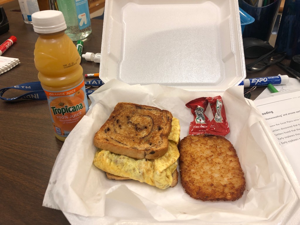 Highway 50 in Brownstown, Indiana. 7:15 a.m. Friday morning on the way to school.🥓 Bacon, 🍳 egg, cheese 🧀 on cinnamon toast, hash browns and an 🍊 orange juice 🥤 for $10.