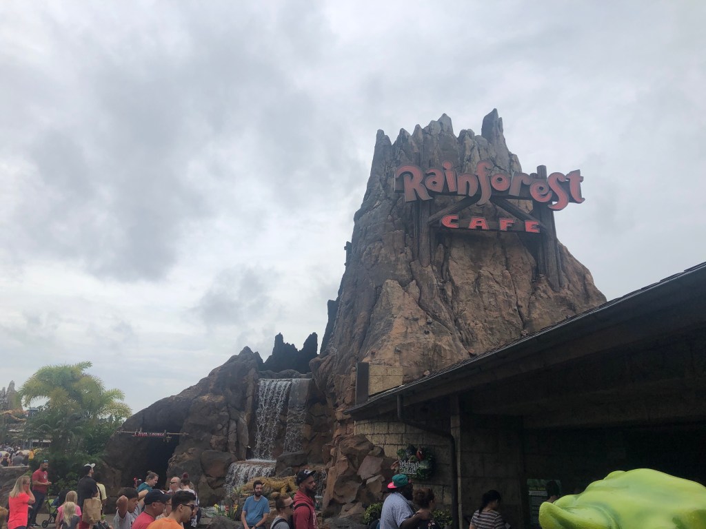 What do you do on a 🌧 rainy day in Florida? You head to Disney Springs and follow the girls around the shops for a while before dining at The Rainforest Cafe.