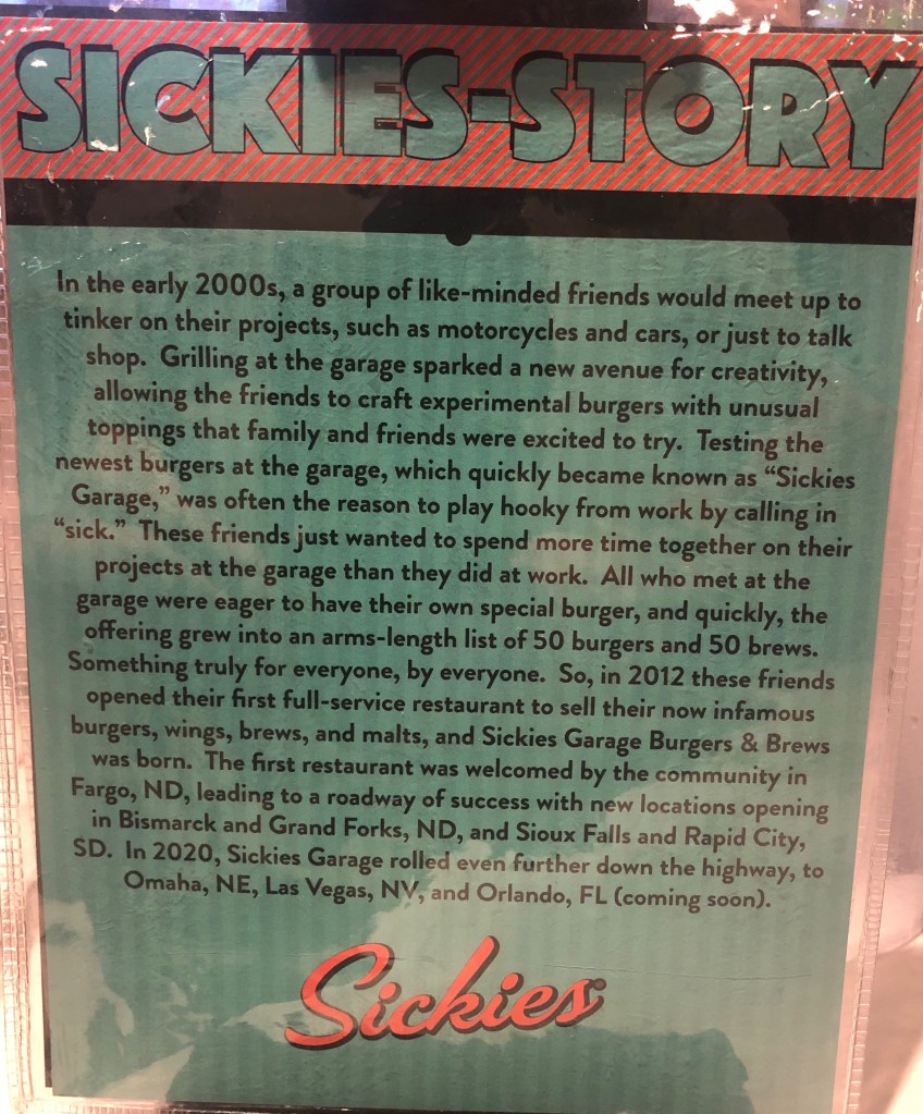 Several miles and a turn around later, turns out that Sickies Garage is a 😎 cool place with some great food.