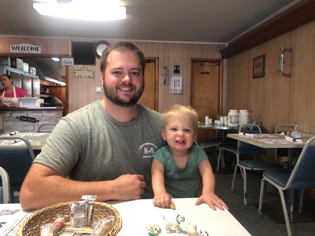 I traveled to New Ross to see my grandson, Lawson. I left early without 🍳 breakfast so Lawson and walked over to the New Ross 🥩 Steak House for lunch.