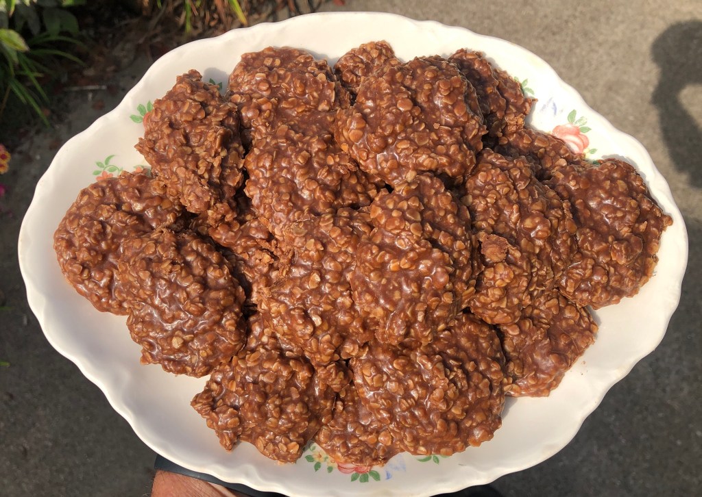 When I walked in the door 🚪 and spied a tray of chocolate No-Bake 🍪 cookies, I knew the evening was taking an upswing. I had already played 18 holes 🕳 of golf ⛳️ and was having a wonderful day, but these cookies made it better.