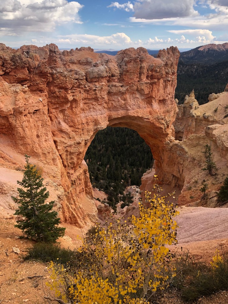 The girls taking it all in.A lot going on here on this one. I thought I could kick a field goal through the uprights in the foreground. Then a maze of hoodoos at the bottom and the vastness in the background. Jaw dropping.Natural Bridge. Elevation: 8,927 feet.