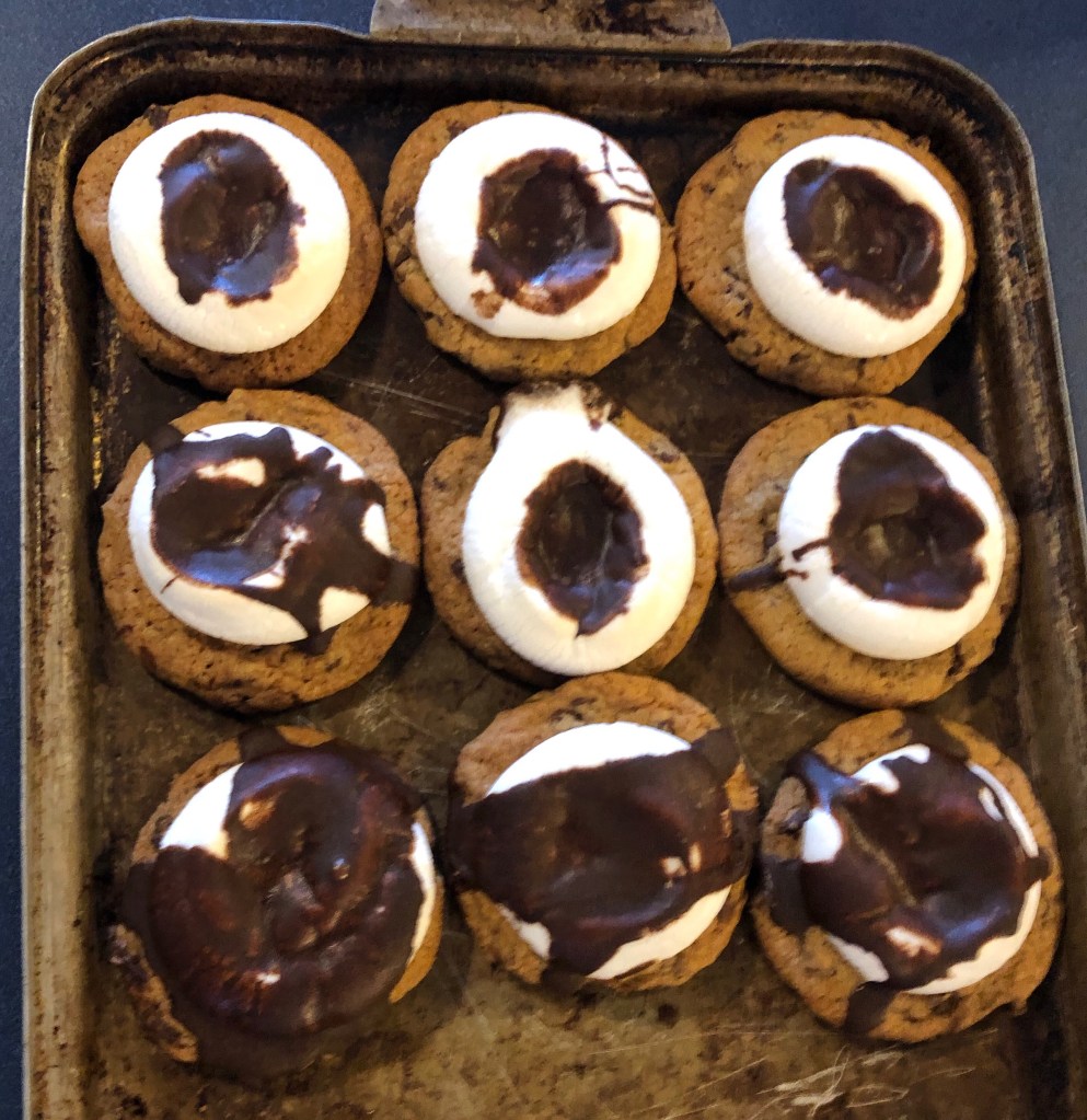 She baked a chocolate chip 🍪 cookie, Added a marshmallow and after it had melted a bit, she spread chocolate frosting on top. Home run!!!