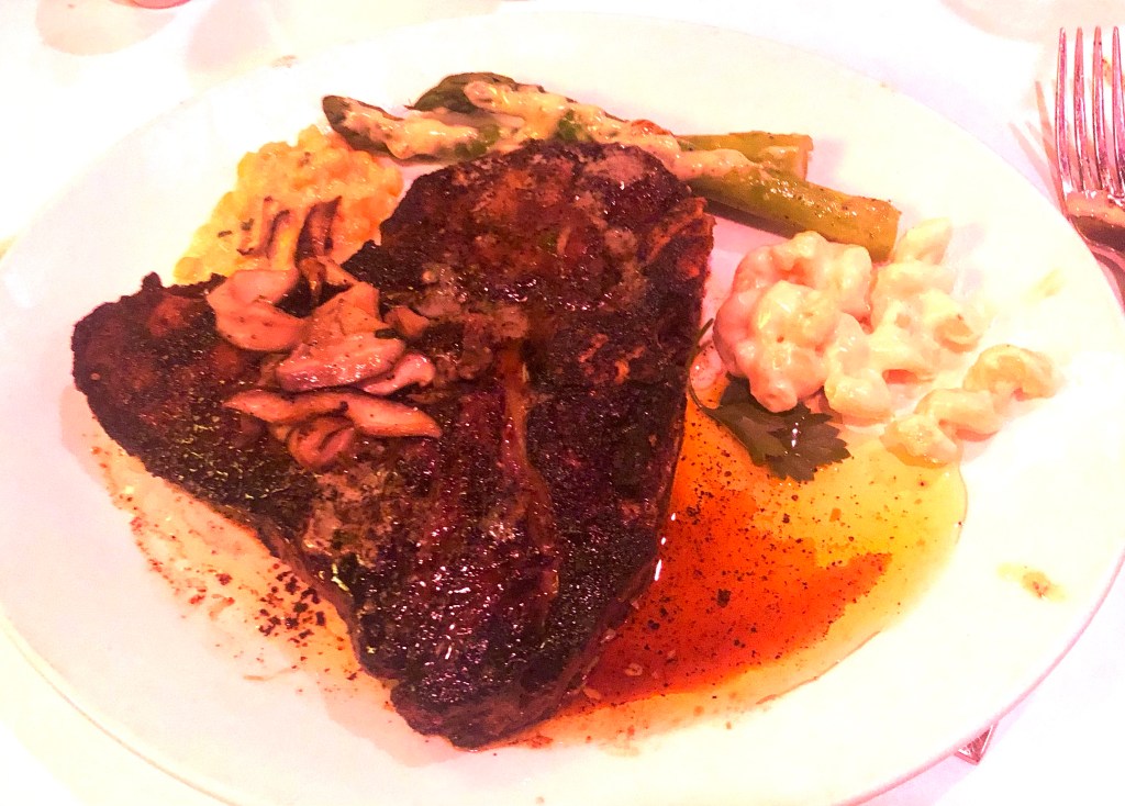 I had the Porter House T-Bone which one side off he bone is a New York Strip and the other is a Filet Mignon. It was 24 ounces. When I first saw it, I doubted I could eat the whole thing. However, I made it to the finish line.