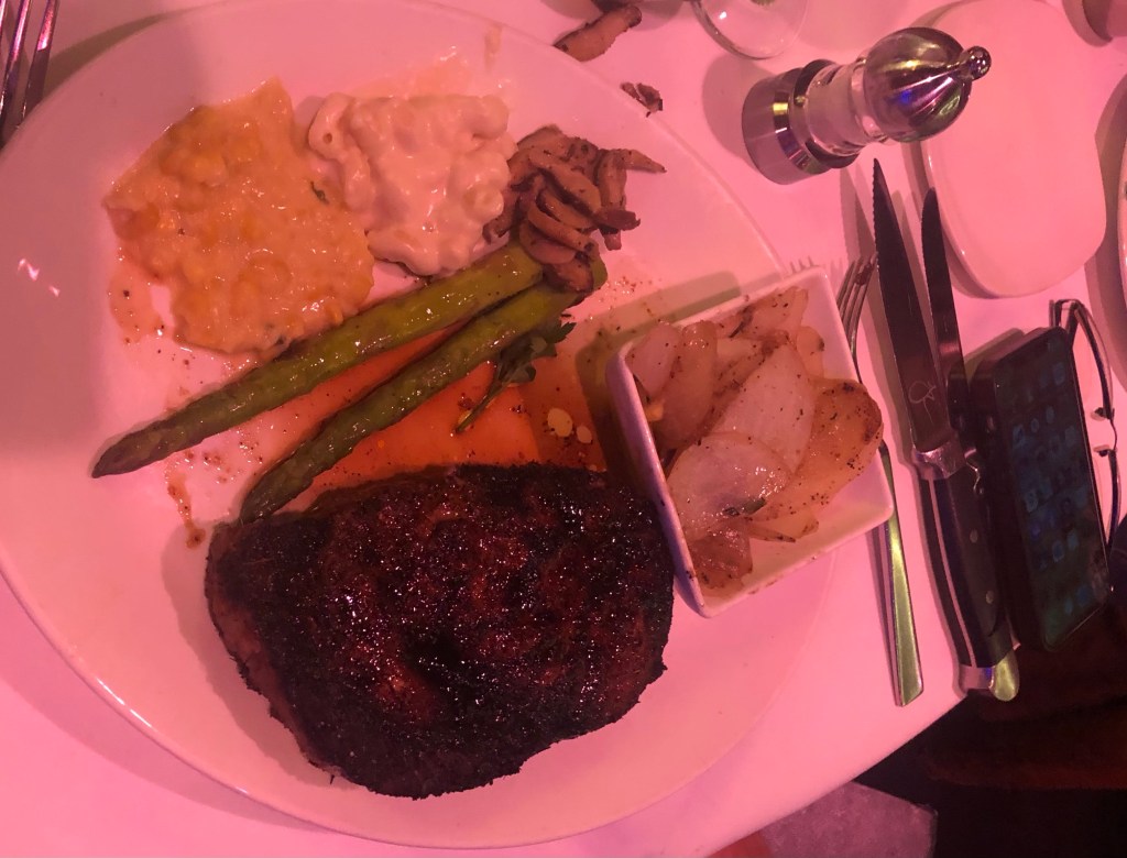 For sides, we had the garlic 🧄 creamed 🌽 corn, mushrooms 🍄, asparagus, and a delicious Mac and cheese. They all were superb.