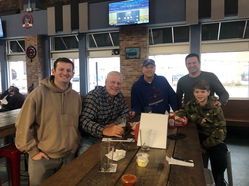 It all started Thursday evening at Rush Off Main, a Cubs Bar in Brownsburg. Jon and Brevin Tilmon met their cousins, Alec and Chris Schuck and myself for some Old Style beer and Chicago themed food.
