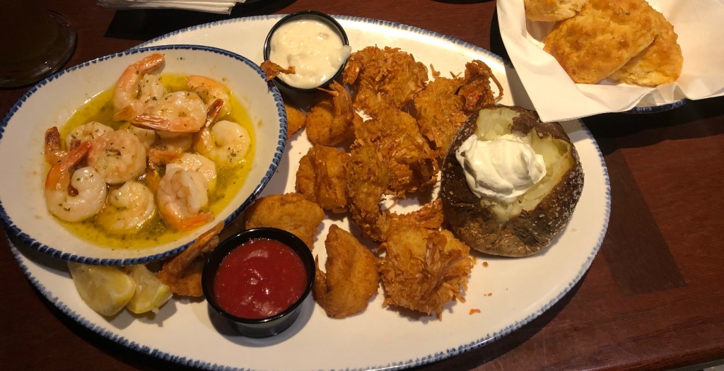 The coconut 🥥 shrimp with pina colada sauce , fried shrimp and cheddar bay biscuits were wonderful! (I was too full for the scampi, but will have it tomorrow for lunch.) We sat in the bar for quicker service and even went to 🎯 Target afterward to get Lawson some Mickey Mouse gifts for Valentine’s Day. A pretty good night!