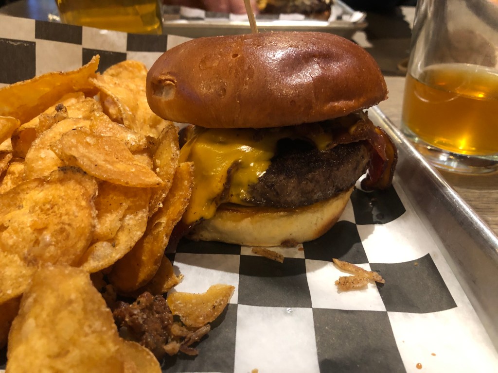 I had the Welcome Home 🍔 Burger which was a hearty one third pound I think with 🥓 bacon, 🧀 cheese and BBQ sauce topped with 🧅 onion straws…Quite delicious!