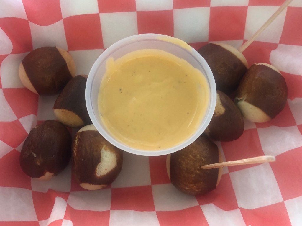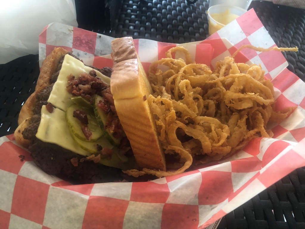 Benny’s Restaurant is next door and you can take your wine with you there if you want. Heidi and I shared a pretzel and beer cheese appetizer and split a bacon, pepper Jack cheeseburger on Texas Toast along with thin onion rings that were superb!