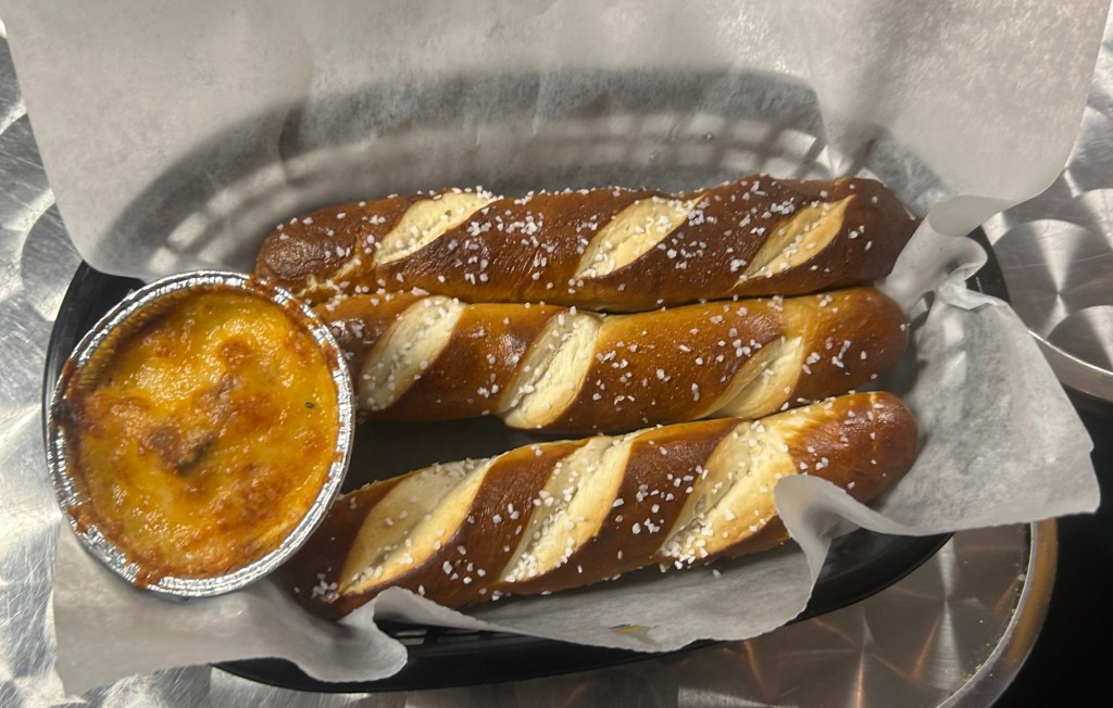 This, ladies and gentlemen, is the Nashville 🥵 Hot 🐓 Chicken Spicoli. Broccoli 🥦, cheddar, Parmesan sauce, mozzarella, and hot chicken.Stahls had a BBQ chicken pizza on a cauliflower crust which was outstanding!As an appetizer we had the pretzels 🥨 with 🍺 beer 🧀 cheese. What the what?A blast from the past.