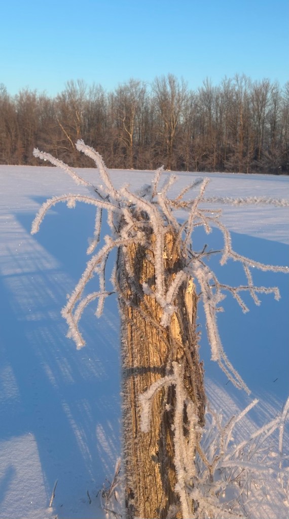 Heidi was explaining frozen fog at dinner and I immediately knew what she was describing. I had stopped on the way to school this morning to take this interesting picture. However, I didn’t know it was called frozen fog. Proud to say that Heidi and I, along with our friend Stephanie Lambring, we are life long learners! You never know, “frozen fog” may be a Jeopardy answer some day.