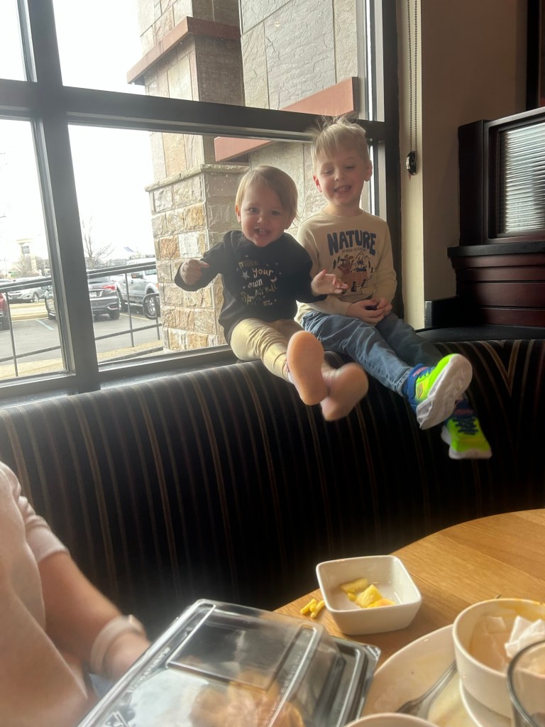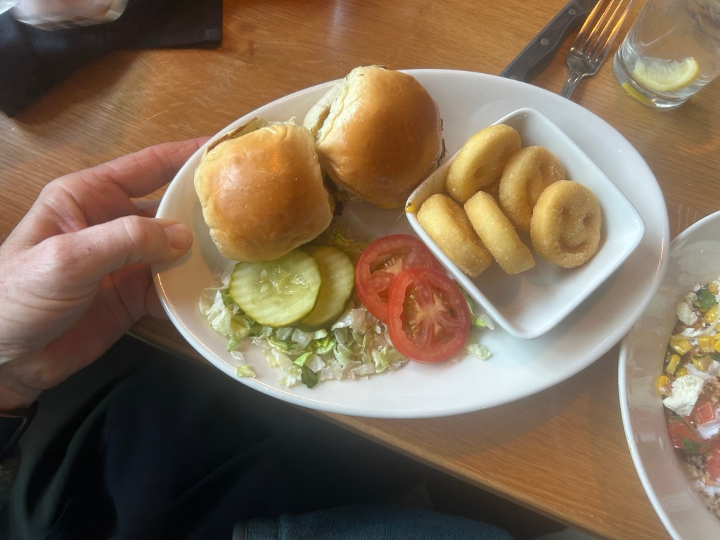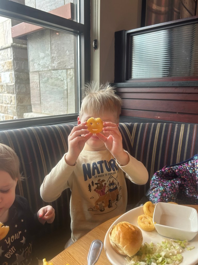 Lawson had two mini cheeseburgers 🍔 with the smiley potatoes 🥔 that were tasty as well as fun to eat.