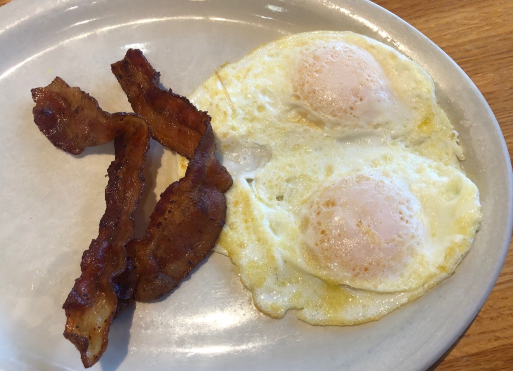 🥓 Bacon and medium 🍳 eggs.Bluetooth pancakes 🫐 🥞 “fresh inside.”