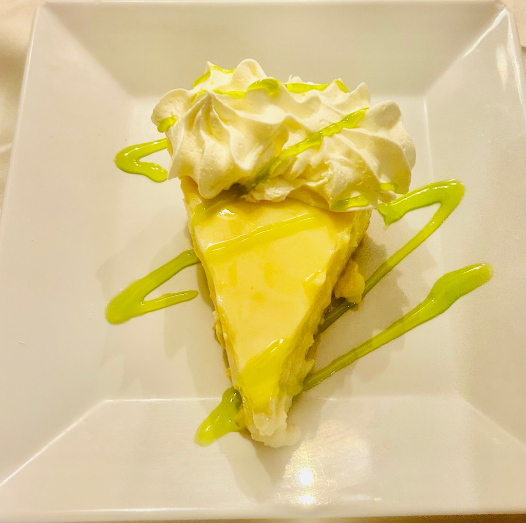 We journeyed to Key West on spring break and experienced several versions of key lime pie. The key ingredients are key lime juice and zest, sweetened condensed milk, and egg yolks; then served in a graham cracker crust.