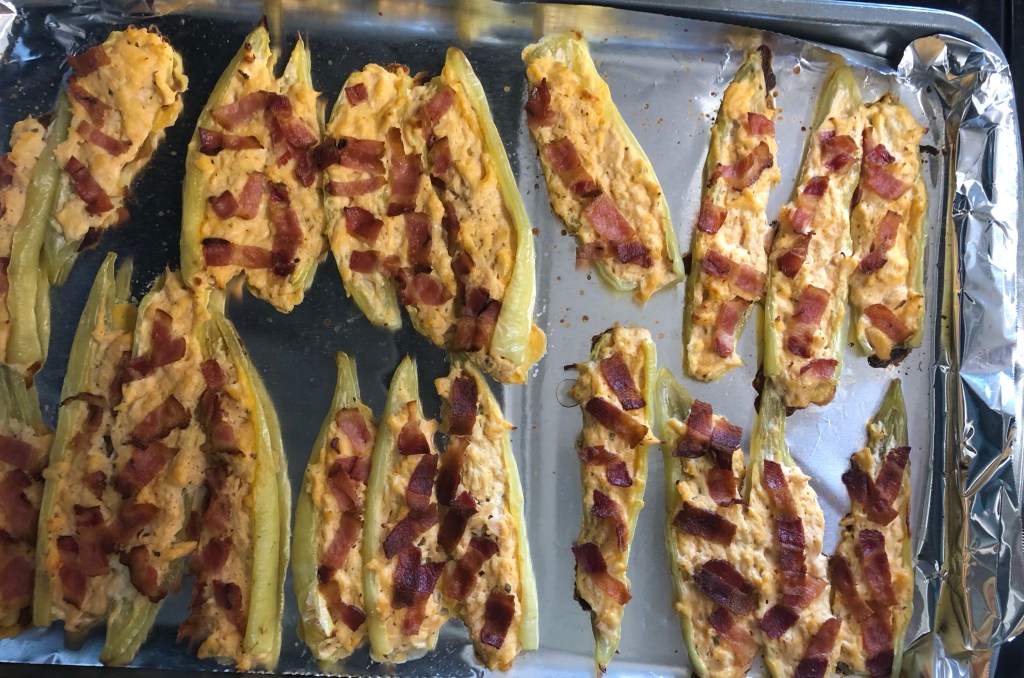 🍌 Banana 🌶 peppers from our garden.Buffalo 🦬 🐓 Chicken Stuffed Banana Peppers With 🥓 Bacon! Whoa!!!